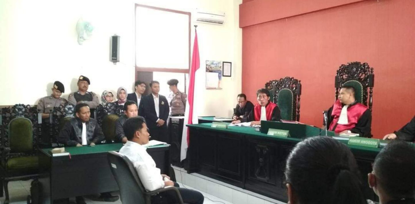 Kantor Kejaksaan Banyuwangi memerintahkan penahanan Budi Pego pada 4 September 2017 atas dugaan menampilkan logo komunis, yang mengarah pada “penyebaran komunisme.” Sebagai satu-satunya individu yang ditangkap, ia divonis 10 bulan penjara pada 23 Januari 2018 oleh Pengadilan Negeri Banyuwangi karena melanggar Pasal 107a KUHP atas “kejahatan terhadap keamanan negara.” Ia didakwa atas tiga pasal; menyebarkan paham komunisme, tidak melakukan pemberitahuan pada kepolisian merujuk UU No. 9/1998, dan sebagai pemimpin protes mempromosikan secara terbuka paham komunisme dengan menampilkan simbol palu dan arit saat demonstrasi. Kuasa hukum Budi Pego dan jaksa penuntut umum melayangkan permohonan banding pada 26 Januari 2018.